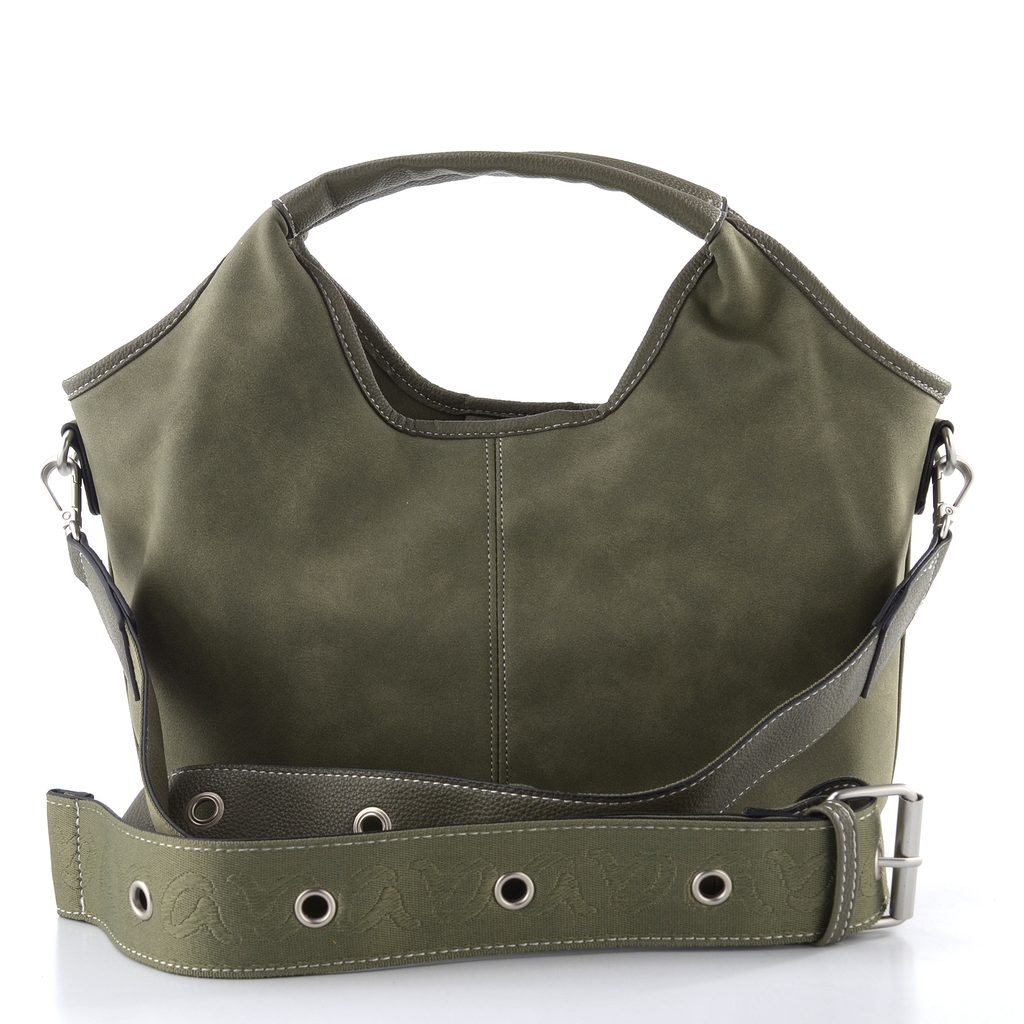 Dámská kabelka s pevnými madly do ruky a s popruhem k nošení jako crossbody.