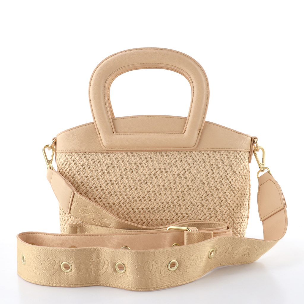 Dámská kabelka s pevnými madly do ruky a s popruhem k nošení jako crossbody.