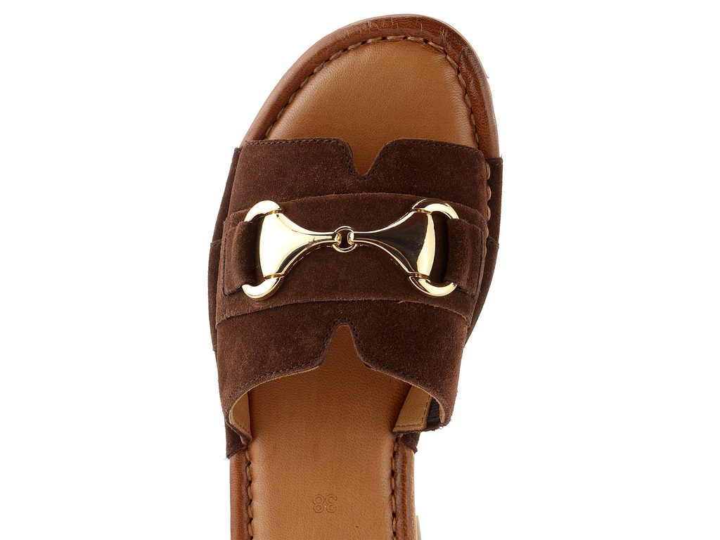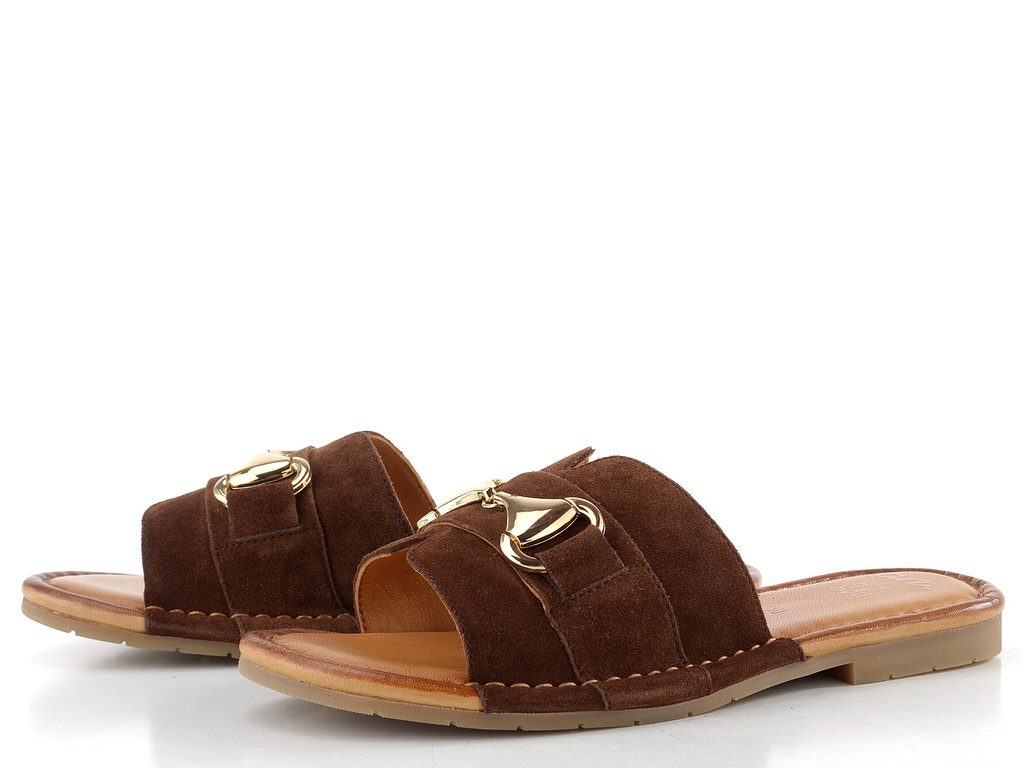 Komfortní módní dámské pantoflíky ze semišové kůže, s ozdobnou aplikací a příjemně měkkou stélkou.