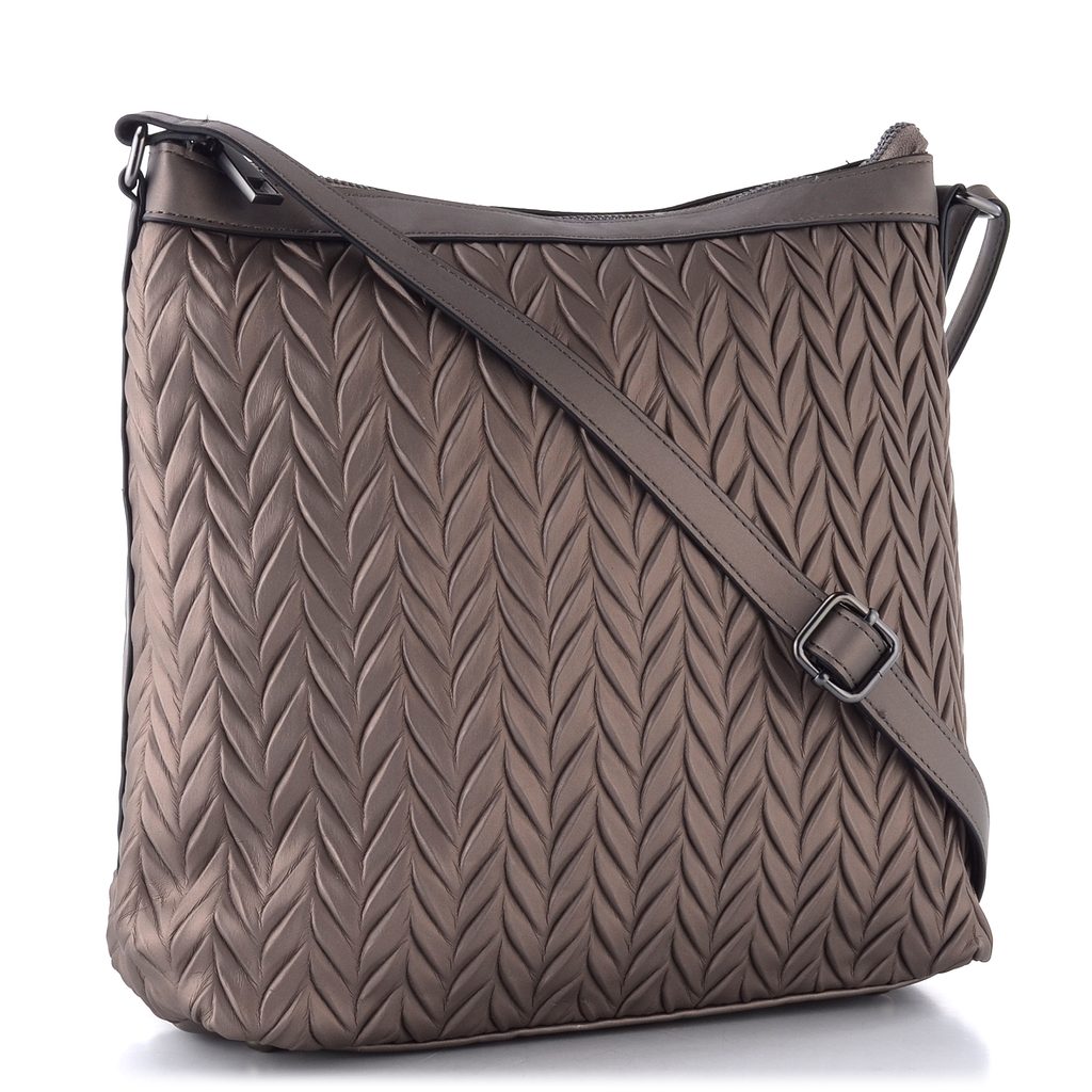 Dámská kabelka v zajímavém odstínu s plastickým vzorem, kterou lze nosit klasicky nebo jako crossbody.