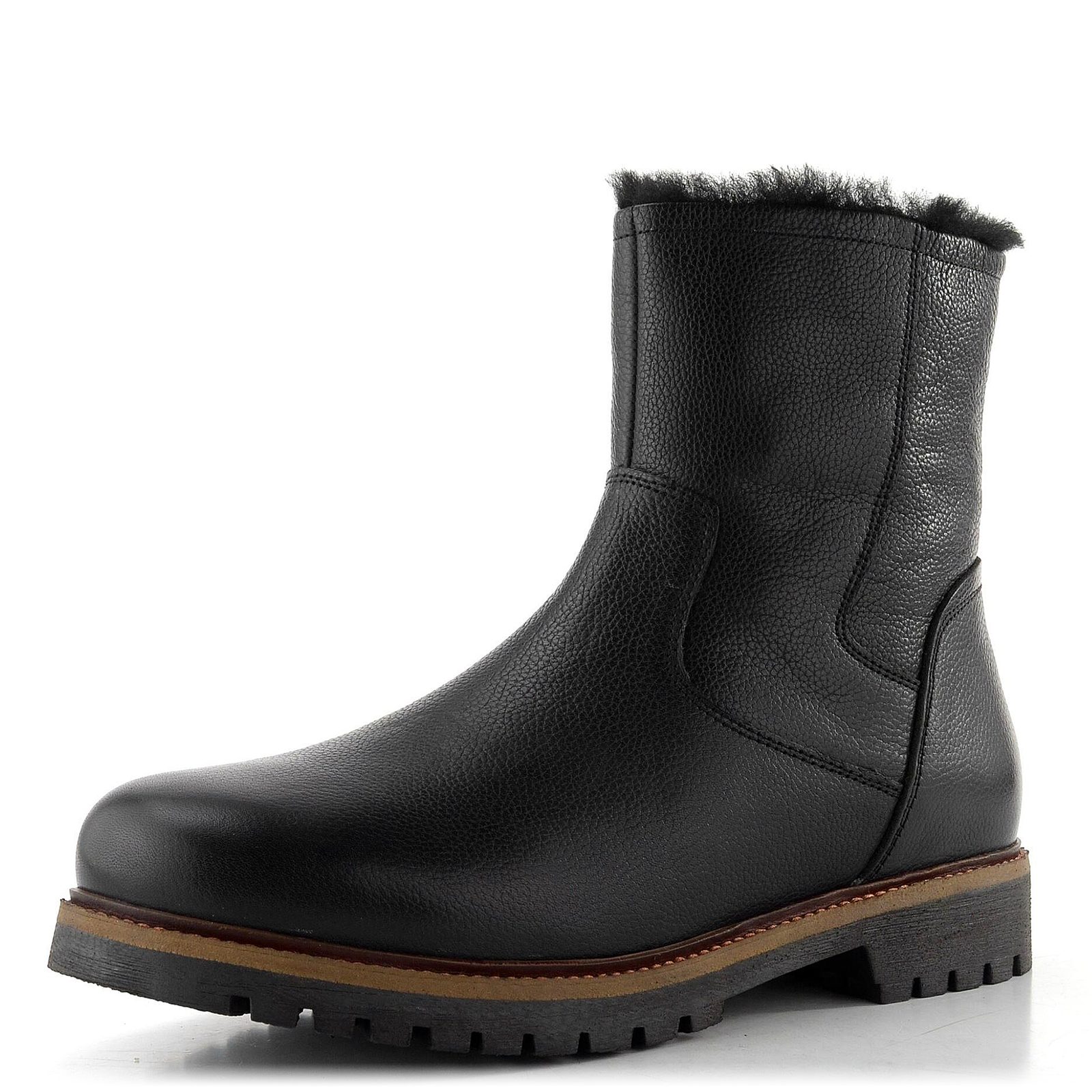 Pánský široký kožený kotník s teplou podšívkou, s postranním zipem a bytelnou latexovou podešví.