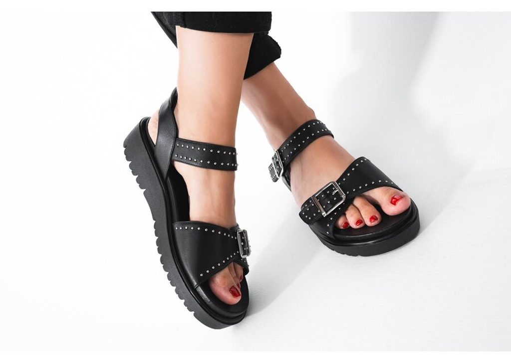 Dámské velmi pohodlné kožené sandály se stylovými nýtky a praktickou, vyjímatelnou vložkou.