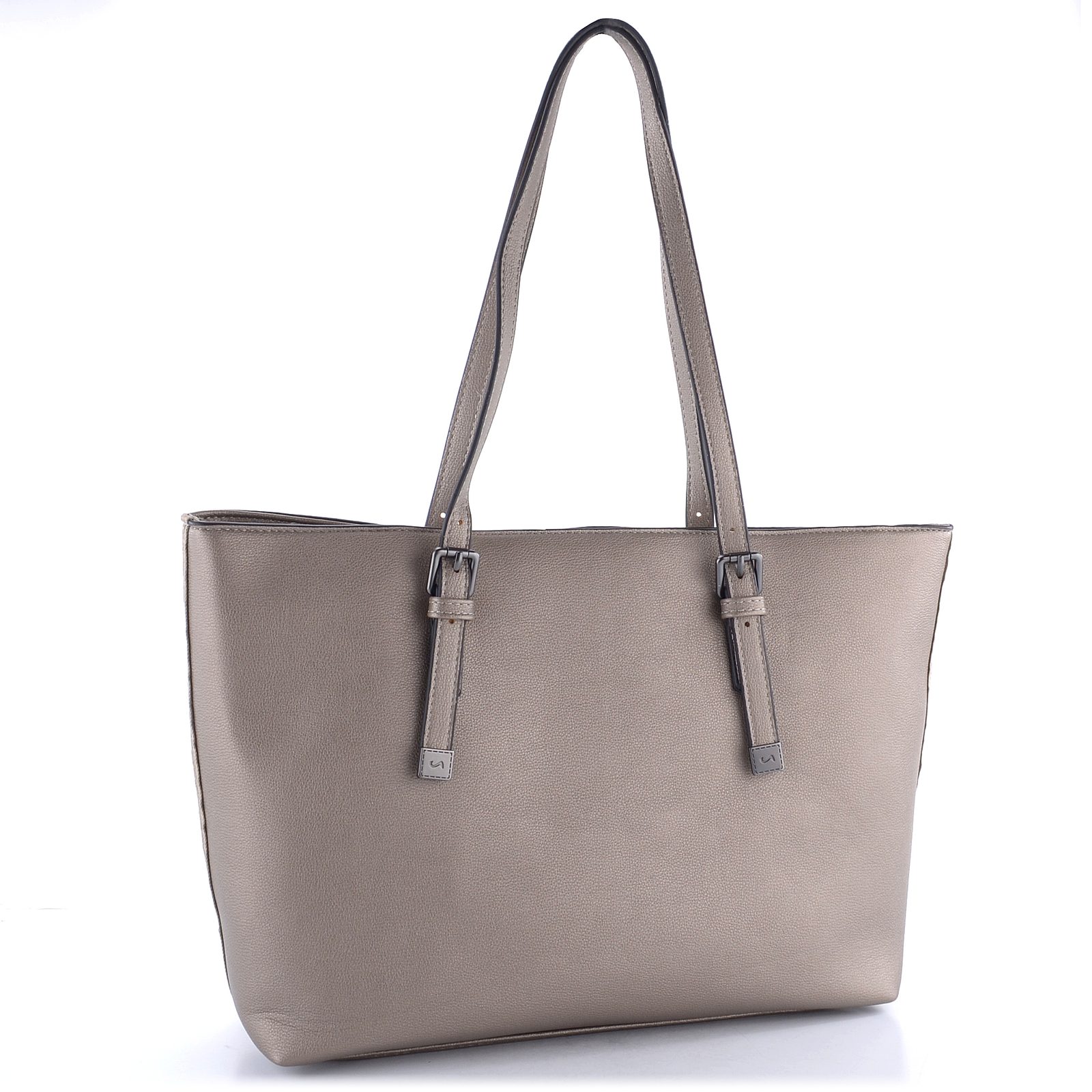 Elegantní dámská shopper kabelka v jednoduchém střihu umocněném jemně metalickou béžovou barvou.