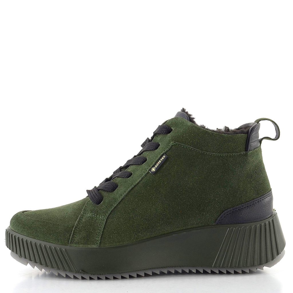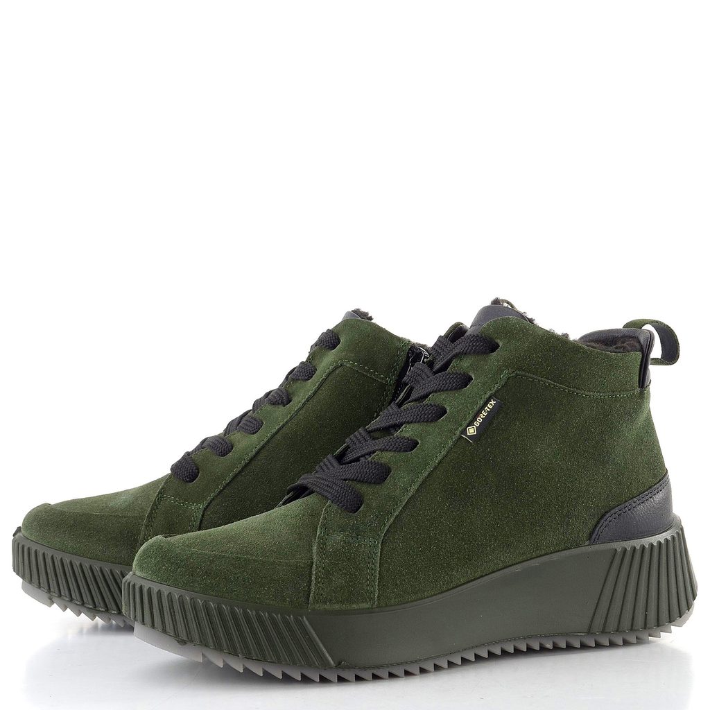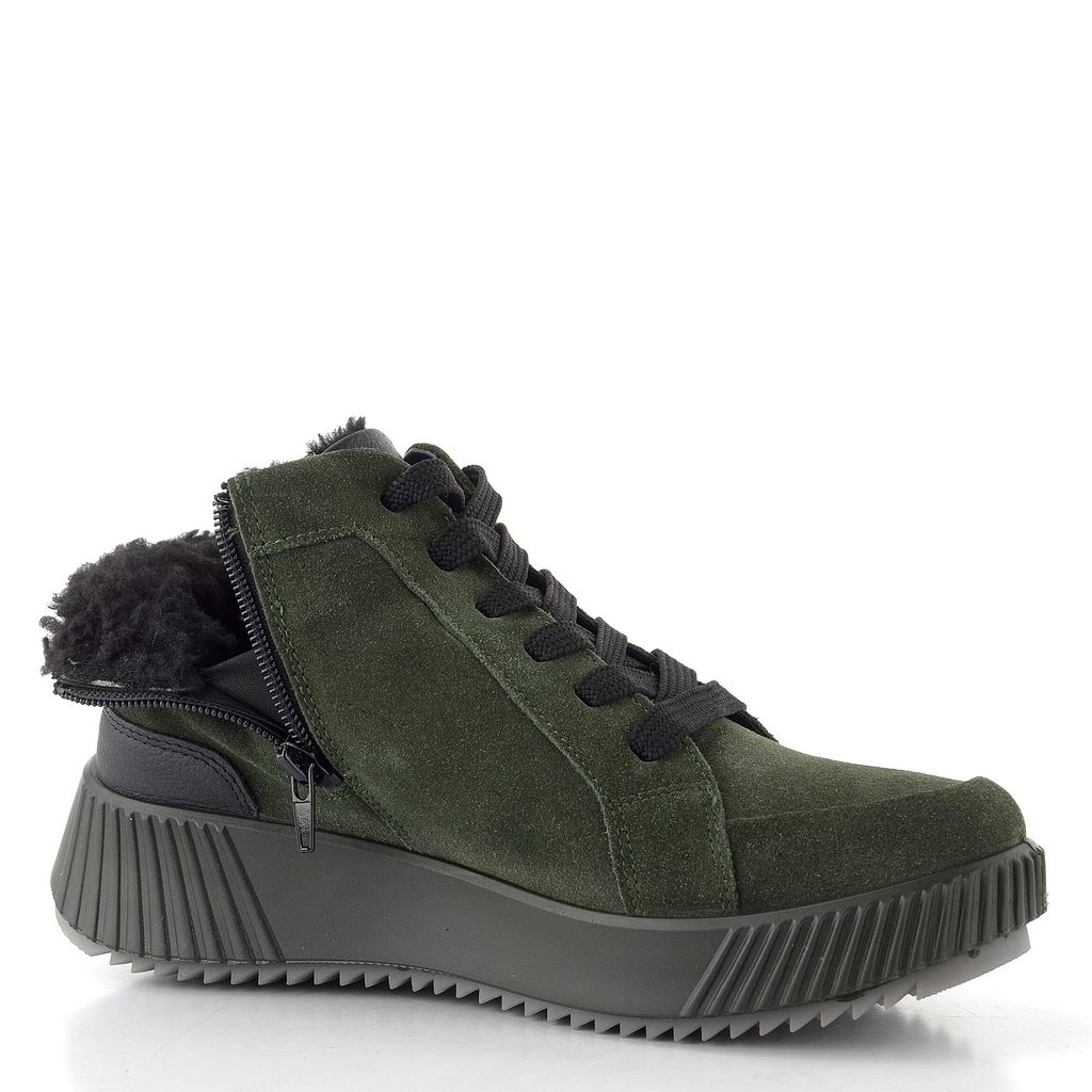Širší dámský semišový kotník s postranním zipem, teplou podšívkou a kvalitní membránou působící proti vlhkosti.