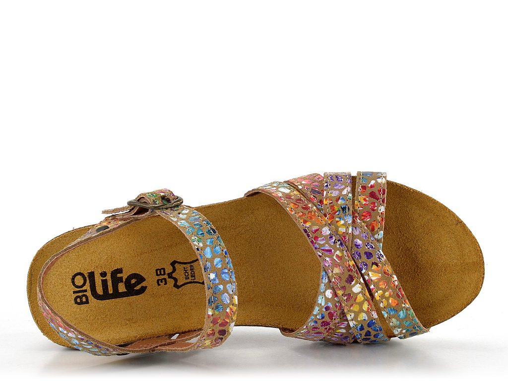 BIO Life kožené sandály na klínu béžové/barevné 1715.24/440