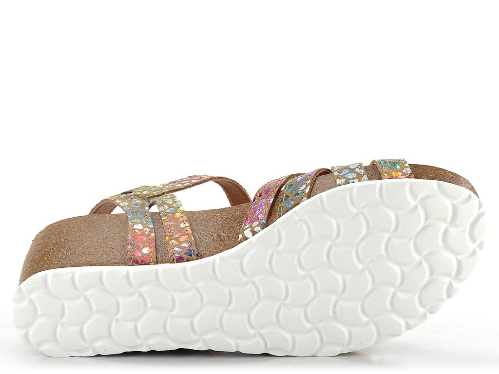 Dámské fuzbetové kožené sandály na klínu v pestrobarevném provedení.