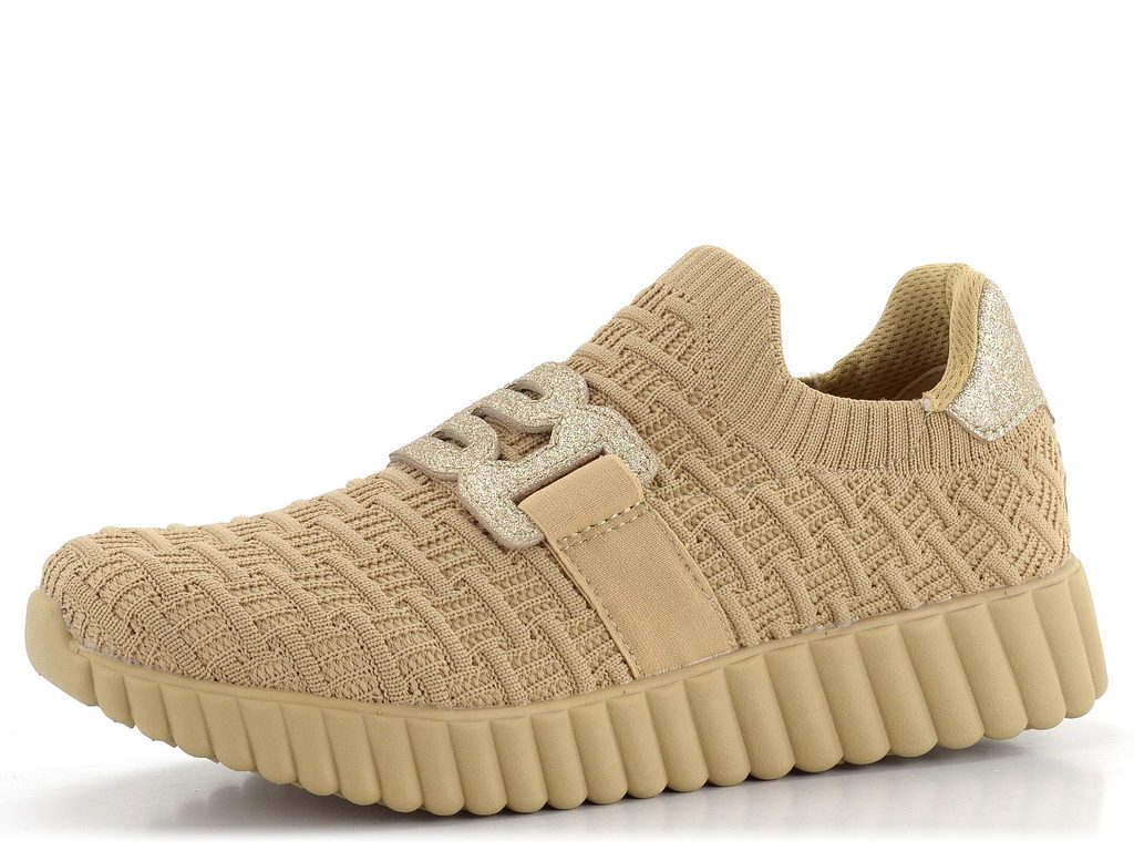 Dámské módní úpletové tenisky v prozouvacím střihu, s metalickými doplňky a velmi lehkou podešví.