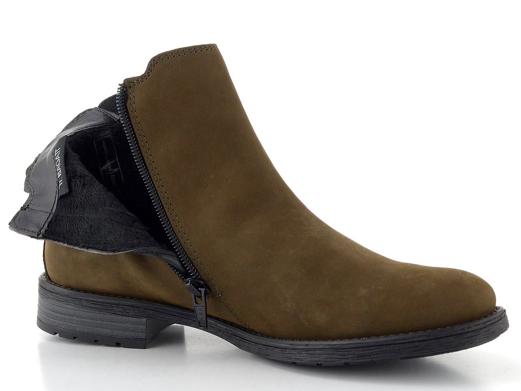 Dámský módní kotník v olivové barvě, se širokou postranní pružinou a na pohodlné latexové podešvi.