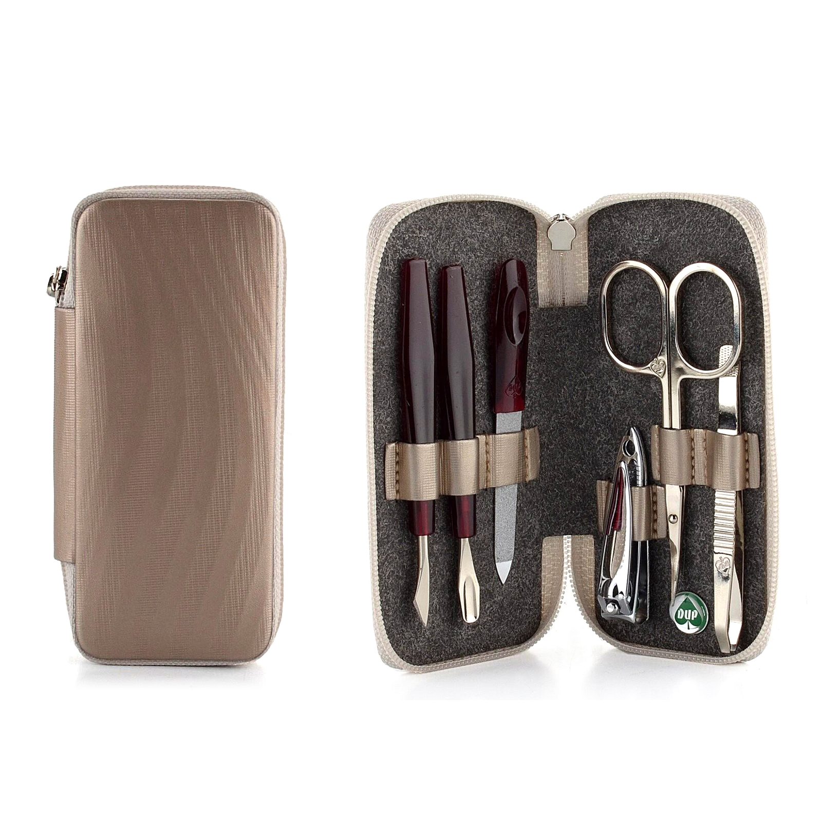 - vnitřní vybavení: 1x nůžky, 1x kovový pilník, 1x pinzeta, 1x štipky, 2x nástroj na úpravu nehtů