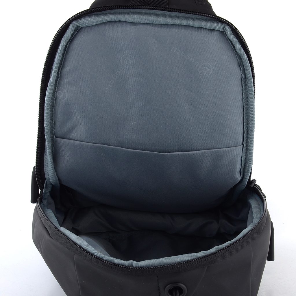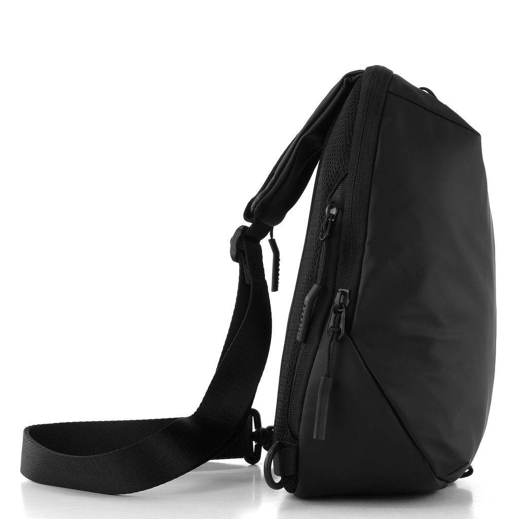 Praktický crossbody batůžek v černé barvě s jedním ramenním popruhem.