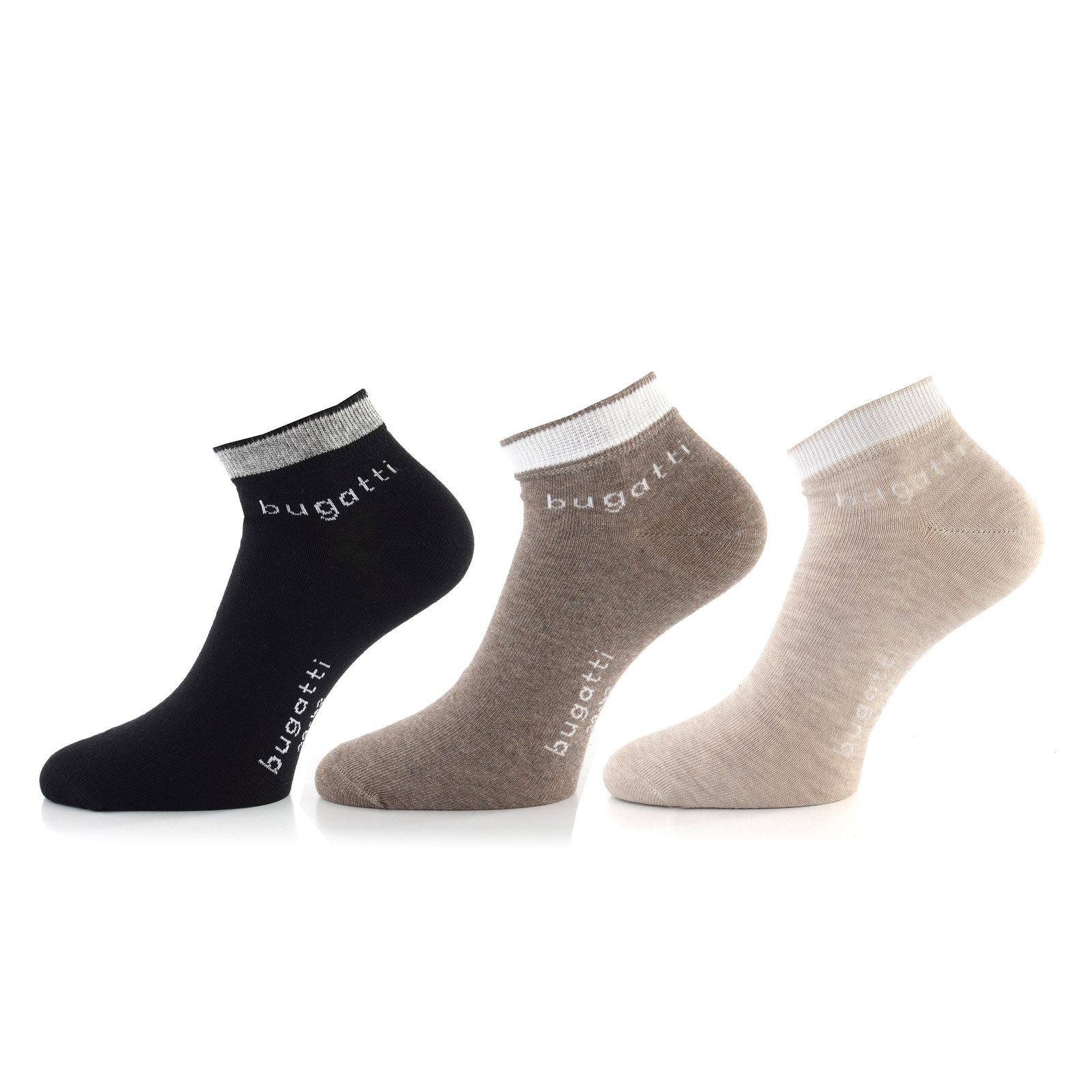 Bugatti nízké pánské ponožky 3 páry černé/hnědé/béžové 6138