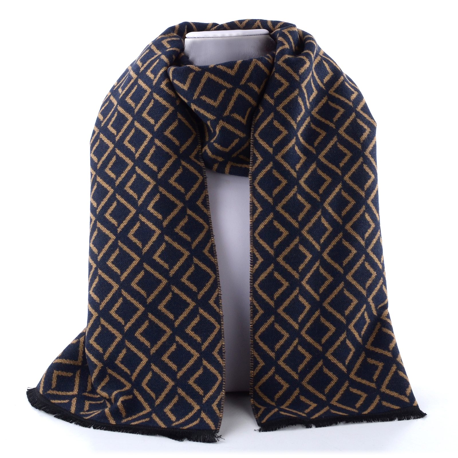 Bugatti oboustranný pánský šál s geometrickým vzorem tmavě modrý 630328-590