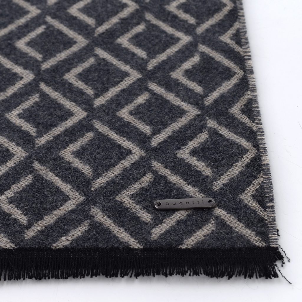 Bugatti oboustranný pánský šál s geometrickým vzorem tmavě šedý 630328-980