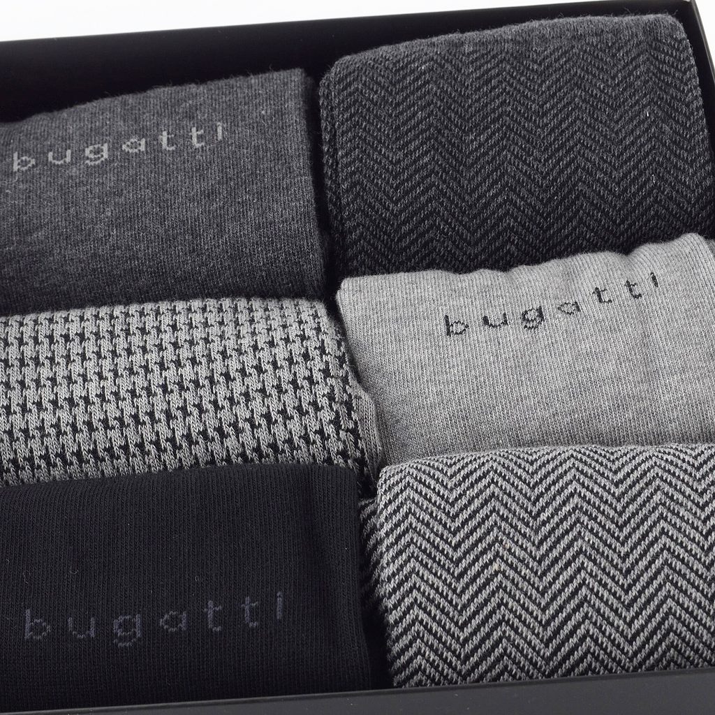 Stylovou krabičkou se šesti páry ponožek od značky Bugatti rozhodně zabodujete, ať už kupujete sadu jako dárek nebo jen tak... pro radost či potřebu.