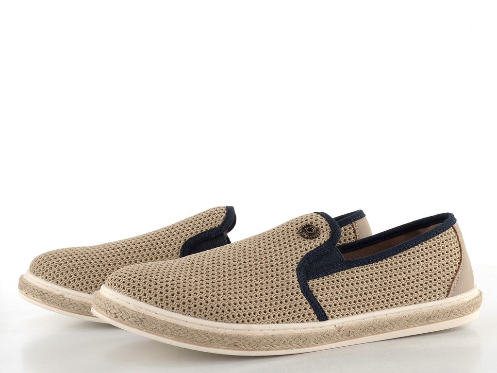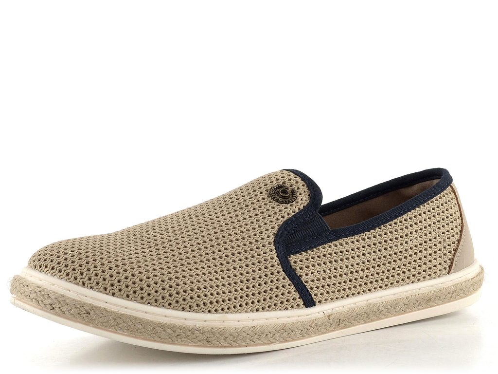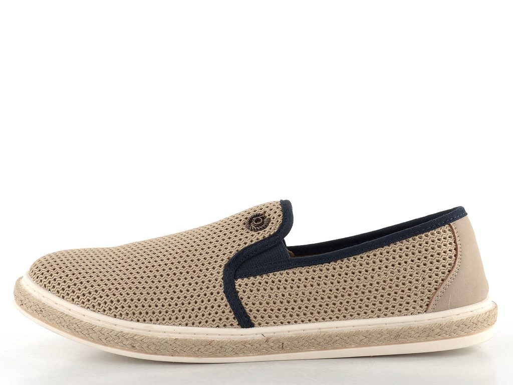 Pánské úpletové mokasíny v přírodní béžové barvě na latexové podešvi opletené jutou.