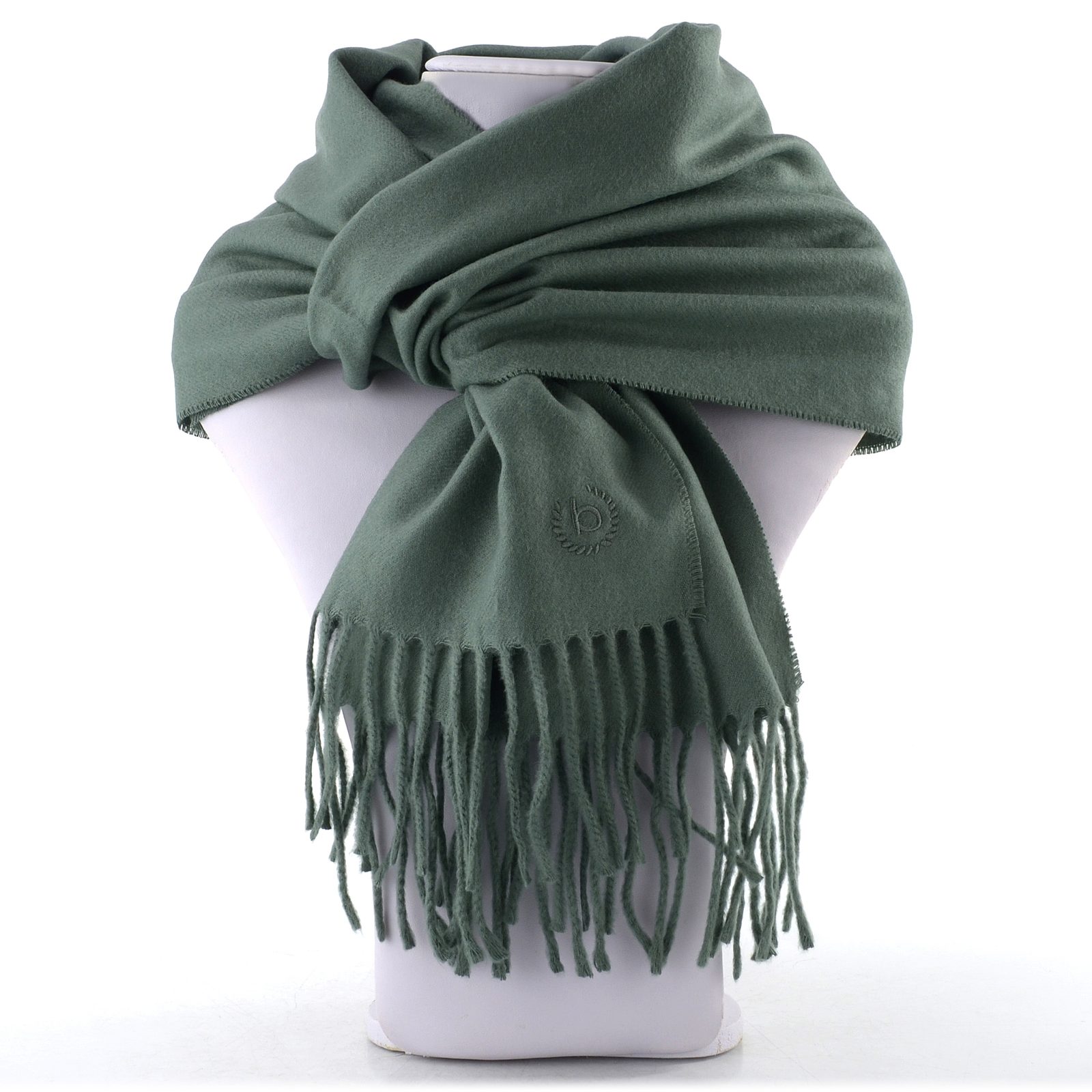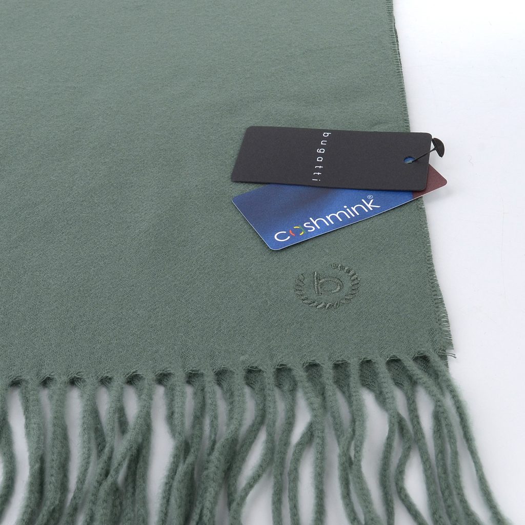 Pánský kašminkový šál s třásněmi a vyšívaným logem Bugatti.