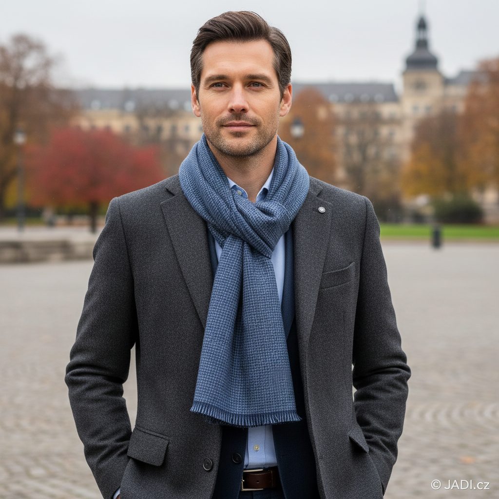 Oboustranný pánský šál z vlněné směsi.