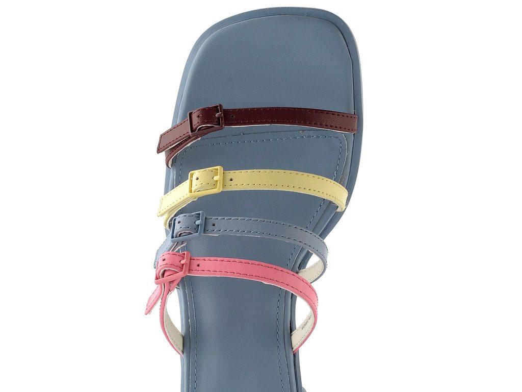 - modrá barva stélky a podpatku doplněna barevnými pásky v modré, světle žluté, růžové a vínové barvě