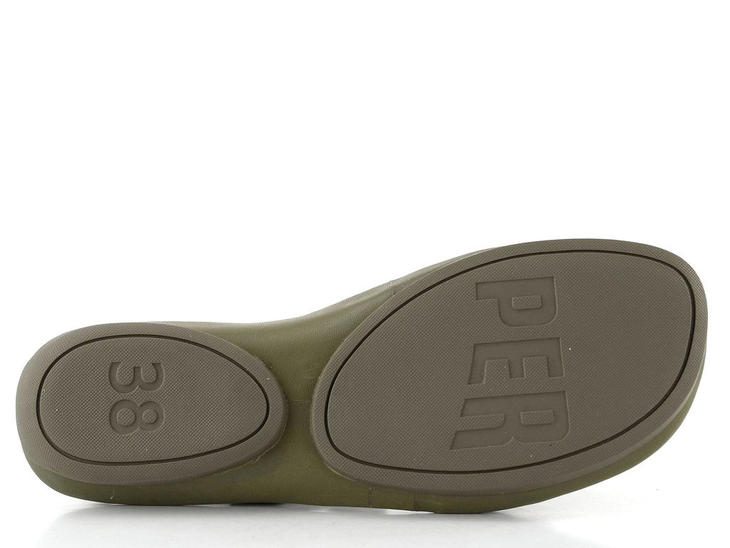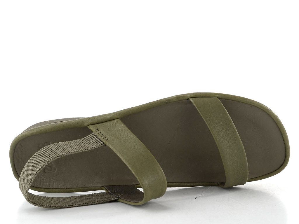 Pohodlné dámské sandály z hladké kůže v olivově zelené barvě s širokou gumičkou přes patu.