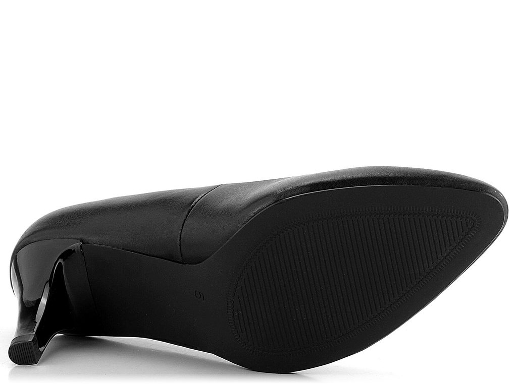 Klasické dámské lodičky z hladké kůže v černé barvě se štíhlým lakovaným podpatkem.