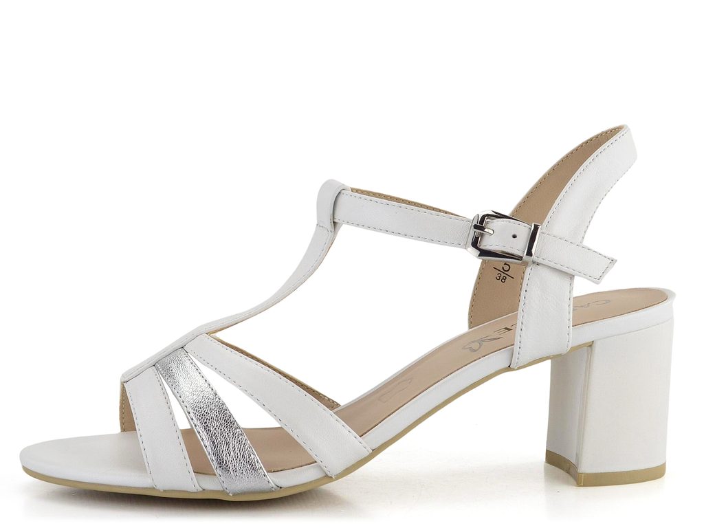 Caprice kožené sandály na podpatku White/Silver 9-28308-42 - 38.5