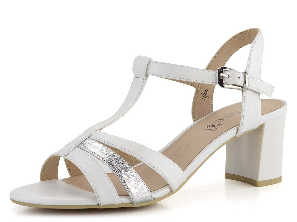Caprice kožené sandály na podpatku White/Silver 9-28308-42, cena: 1 189 Kč