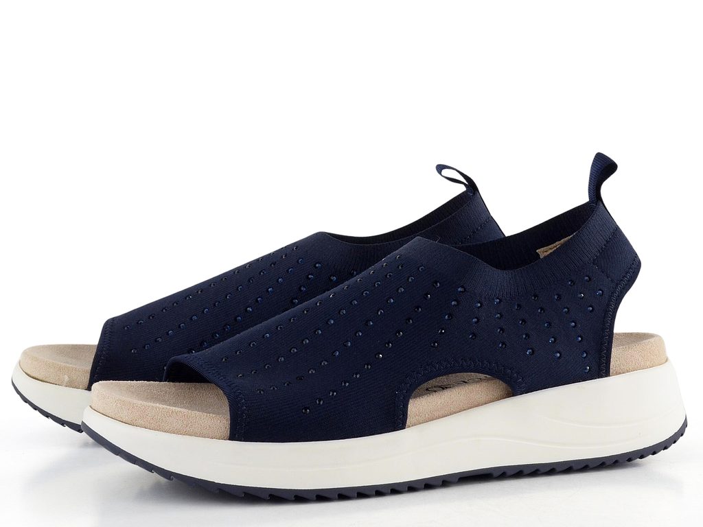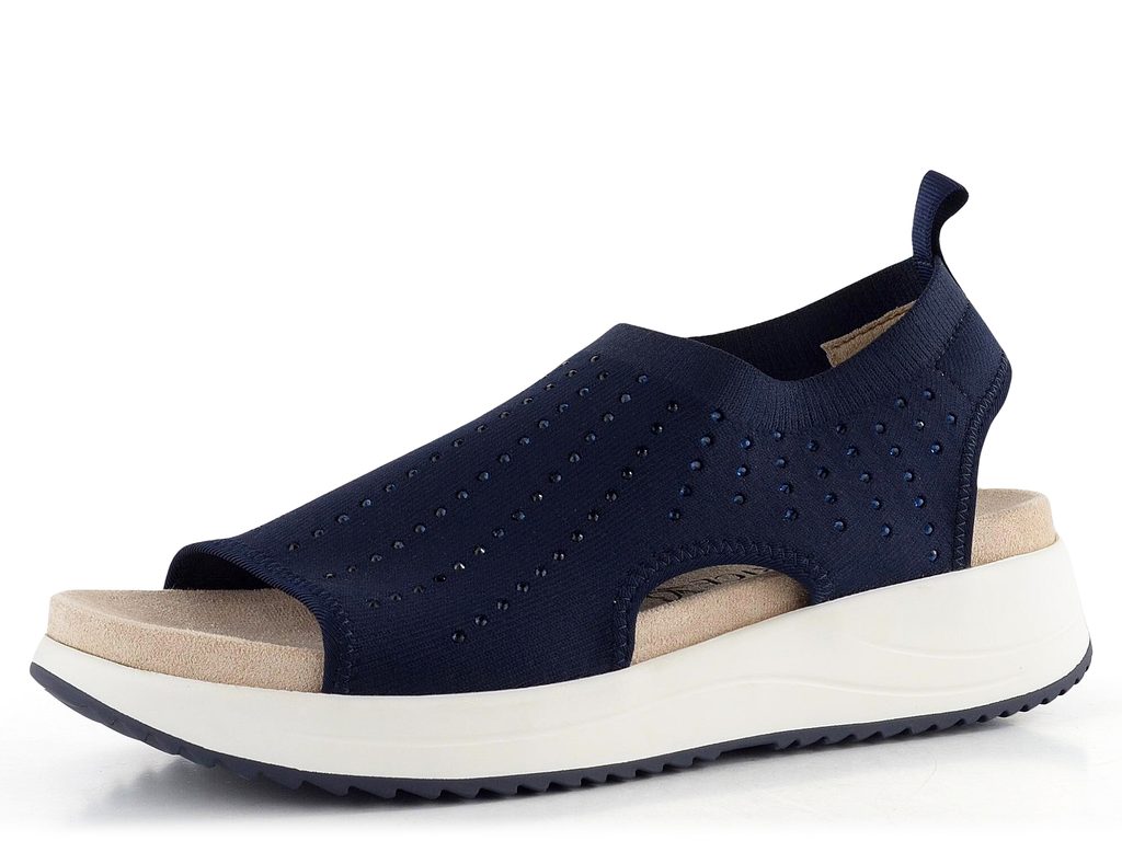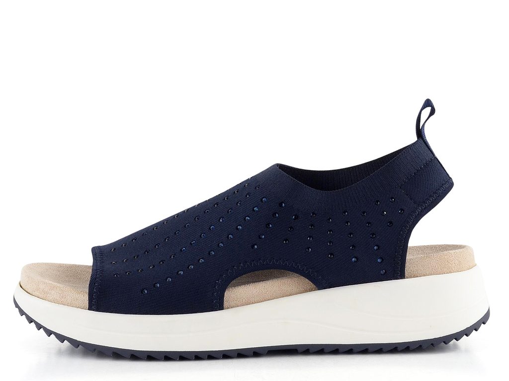 Komfortní dámské sandály z pružného úpletu zdobeného kamínky a s vyjímatelnou vnitřní vložkou.