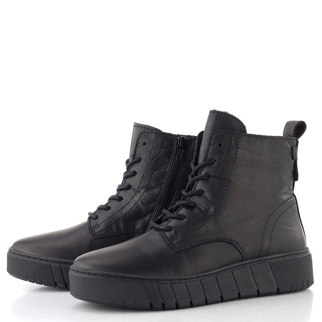 Dámský kožený kotník na šněrování, s postranním zipem a teplou vnitřní podšívkou.