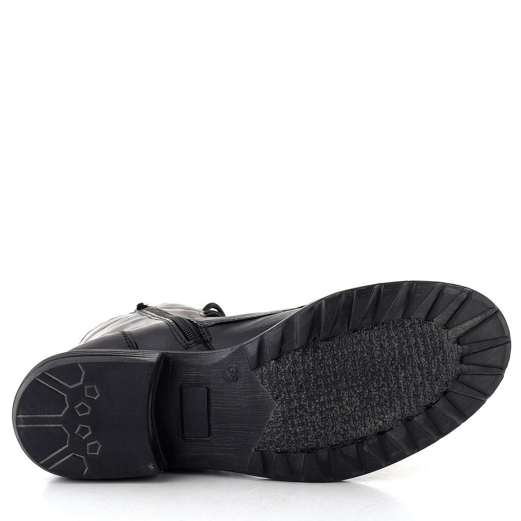 Dámský zateplený kotník z hladké kůže v černé barvě, s postranním zipem a šněrováním.