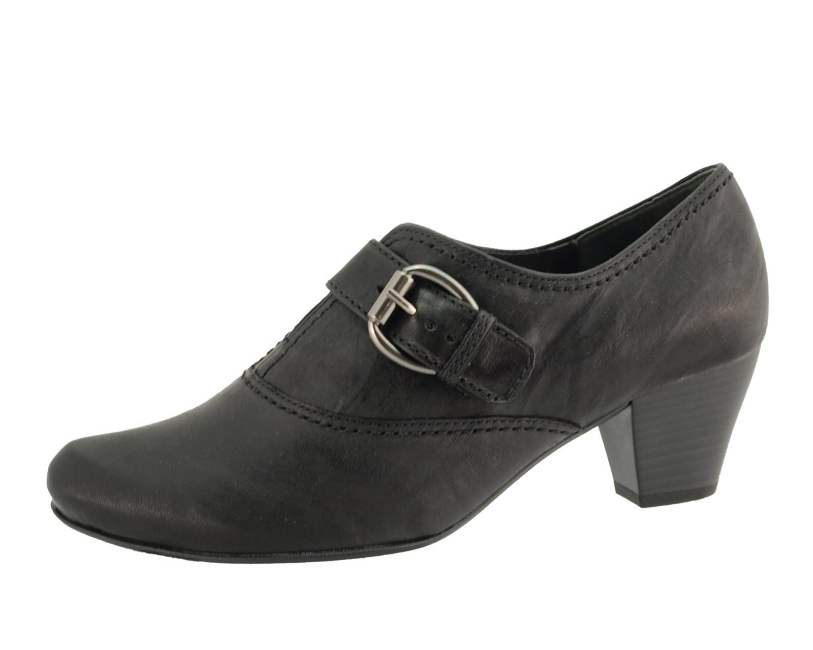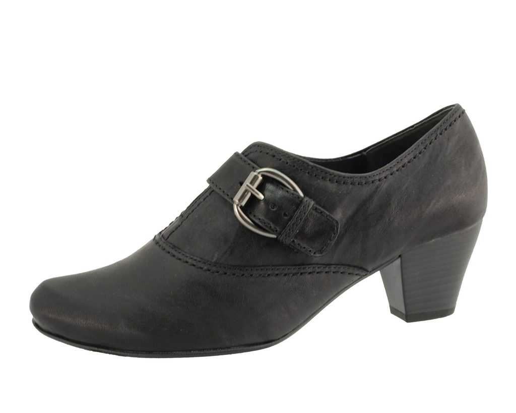 Městská polobotka Gabor v linii Comfort je uzavřenějšího střihu a je vyrobena z dezénované hladké usně. Hrubé štepování je v barvě obuvi. Kování je v leštěné kouřové oceli.Prostřih na nártu a délkově upravovatelný pásek zajistí perfektní padnutí obuvi. Pata je vypodložena jemnou semišovou kůží, aby nedocházelo ke klouzání obuvi v patě a následným otlakům. Vyměkčená kožená nášlapná stélka je mírně anatomicky tvarovaná. Výška nepotaženého pohodlného podpatku je cca 5 cm.