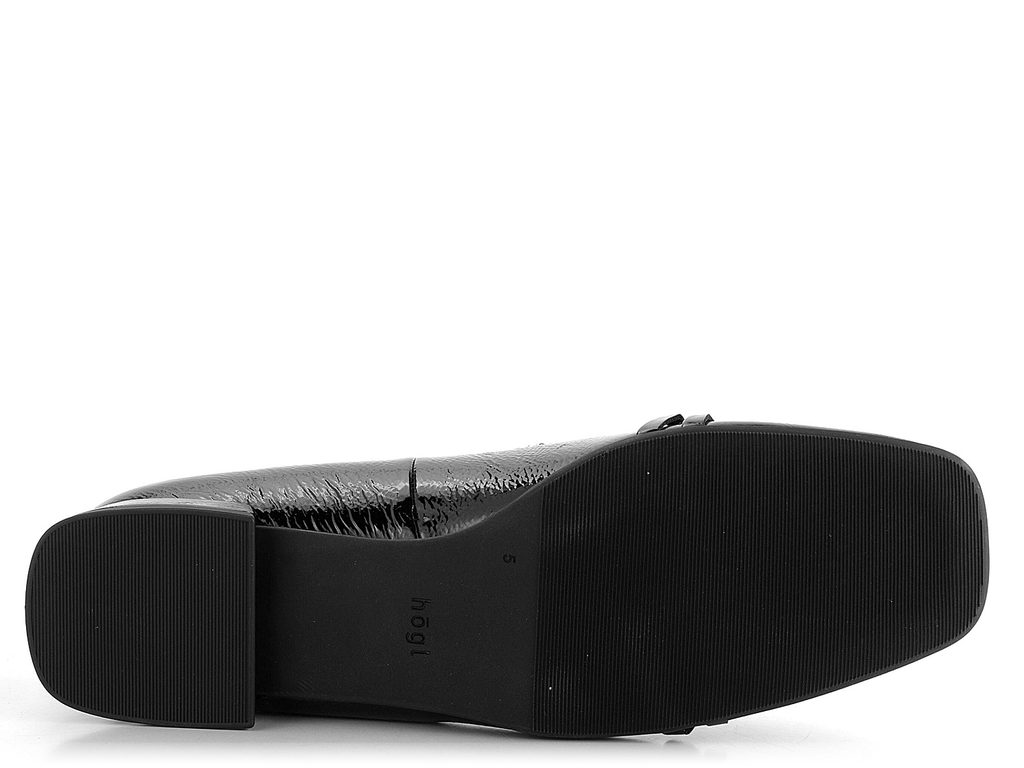 Dámské lakované mokasínky v jednoduchém elegantním střihu s decentně zdobeným nártem.