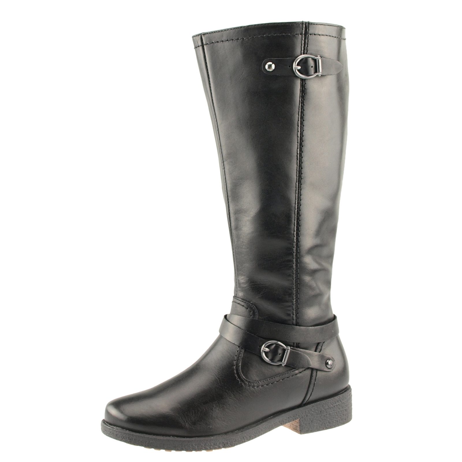 Osobitý model, který skvěle padne ke kalhotám či sukni je v příjemném střihu, optimální výšce a ve vysoce kvalitním zpracování. Kozačky spadají do modelové řady Jenny by Ara, jsou zpracovány z hladké, leštěné usně v černé barvě se zdobnými sponkami v barvě tmavého hematitu. Kozačky jsou opatřeny postranním zdrhovadlem a čtyřmi řadami všitých pružinek pro pohodlné upasování na lýtko. Vnitřní podšívka je z hebkého textilního vlasu, nášlaná část je v patní části z hladké imitace usně, v prstové části ze smyčkované textilie. Kozačky mají výšku 35,5cm (bez podešve), horní vnější obvod je 42cm (měřeno pro vel.38). Vysoce flexibilní podešev s hrubým vzorkem podpoří vaši bezpečnou chůzi.