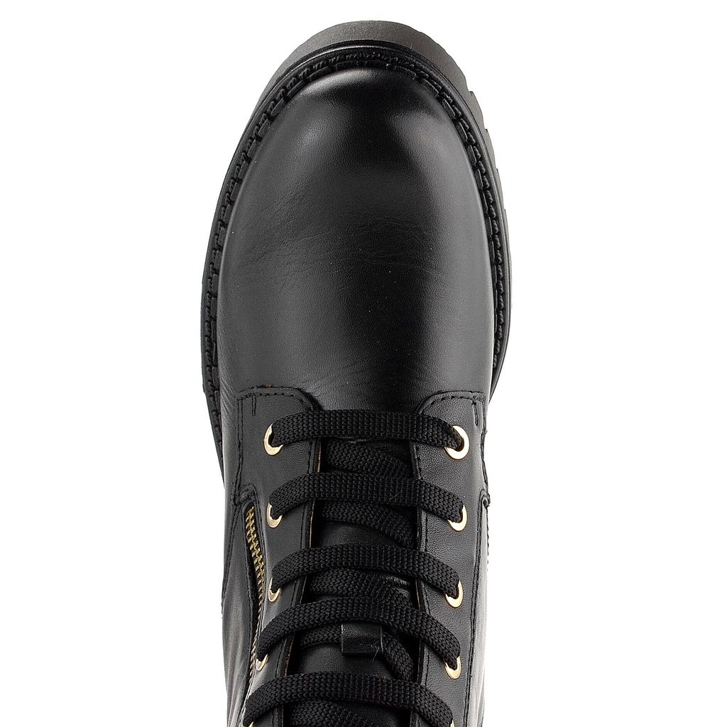 Dámský nevyteplený šněrovací kotník v černé barvě, s postranním zipem a robustní podešví.