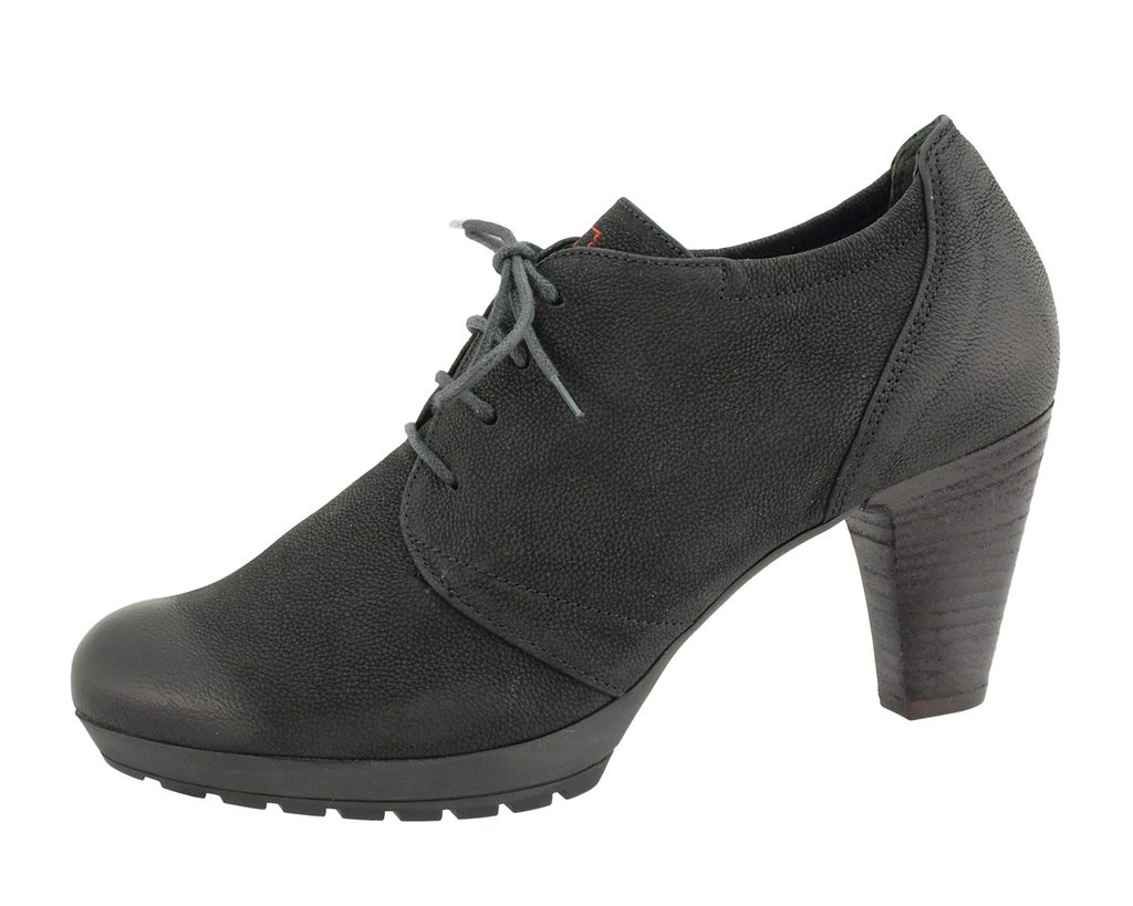 Luxusní polobotky Högl jsou z poddajné patinované nubukové usně v módním "obnošeném" vzhledu. Šněrování na nártu podložené jazykem zajistí perfektní padnutí obuvi. Postranní část obuvi je v pružnou vsadkou z vnitřní i venkovní strany polobotky.Nášlapná stélka je vyměkčená, pod patou je odpružovací bod zajišťující odlehčení došlapu. Pata je vyložena semišovou kůží, která umožní lepší usazení a nesklouzávání paty. Masivní flexibilní podešev je s protismykovými drážkami a je vysoká cca 1,5 cm. Pohodlný zúžený podpatek je v imitaci dřevěného dekoru a je vysoký cca 7,2 cm.