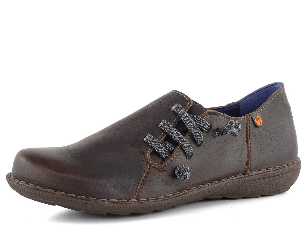 Pohodlné dámské kožené polobotky v hnědé barvě s pružnými šněrovadly na boční straně obuvi.