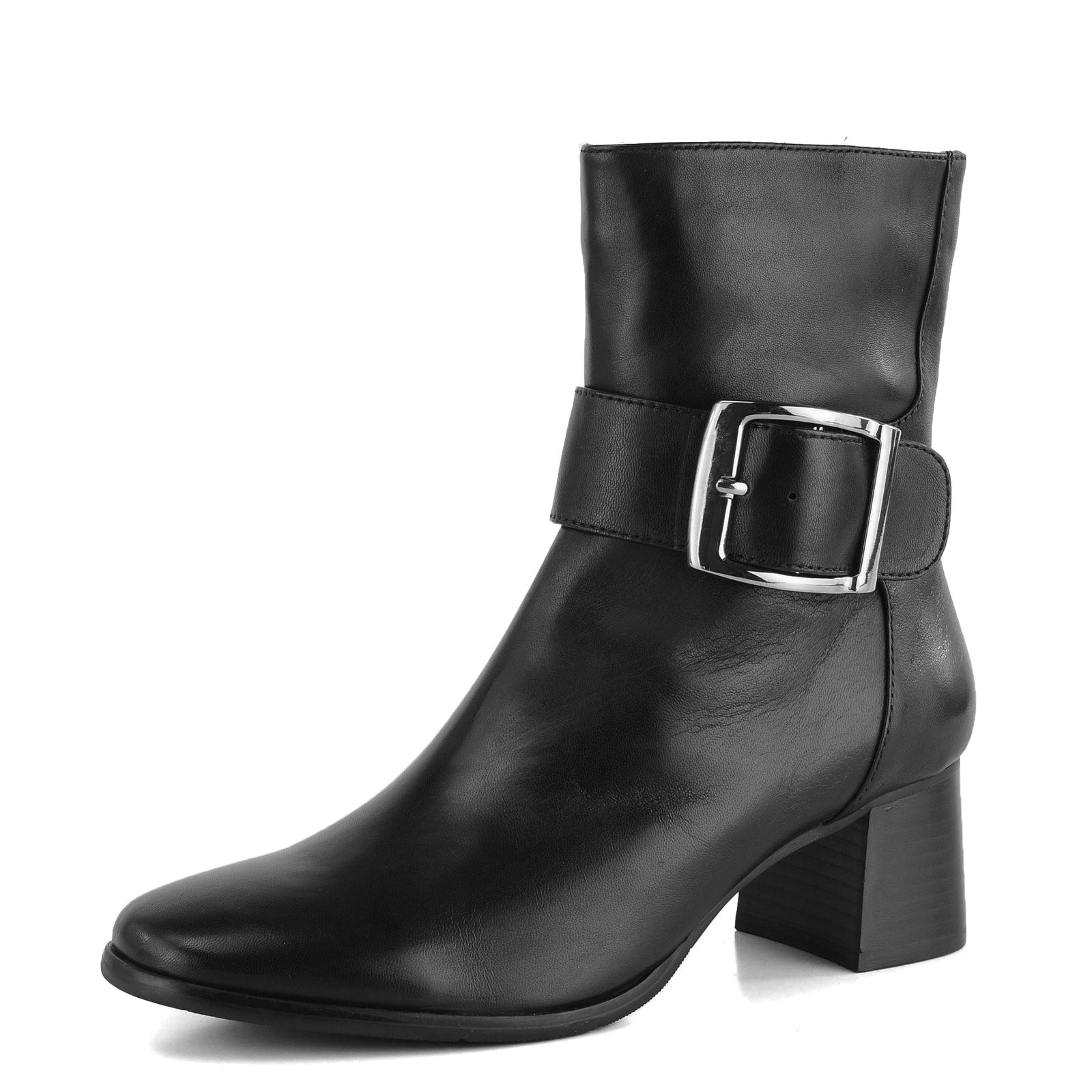 Dámská kotníčková obuv z jemné kůže s vyteplením a nádhernou dominantní kovovou sponou.