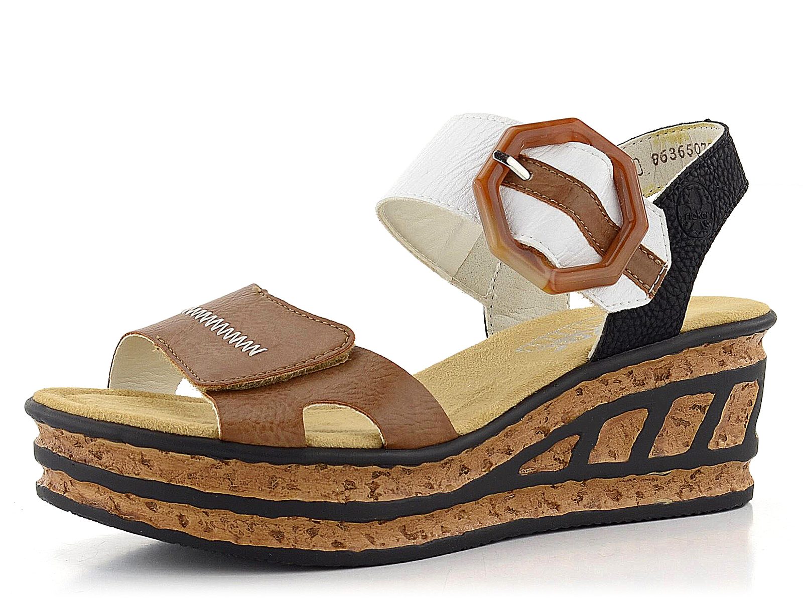 K letním dnům klínky prostě patří. Obujte si tyto, v zajímavé barevné variantě od značky Rieker.