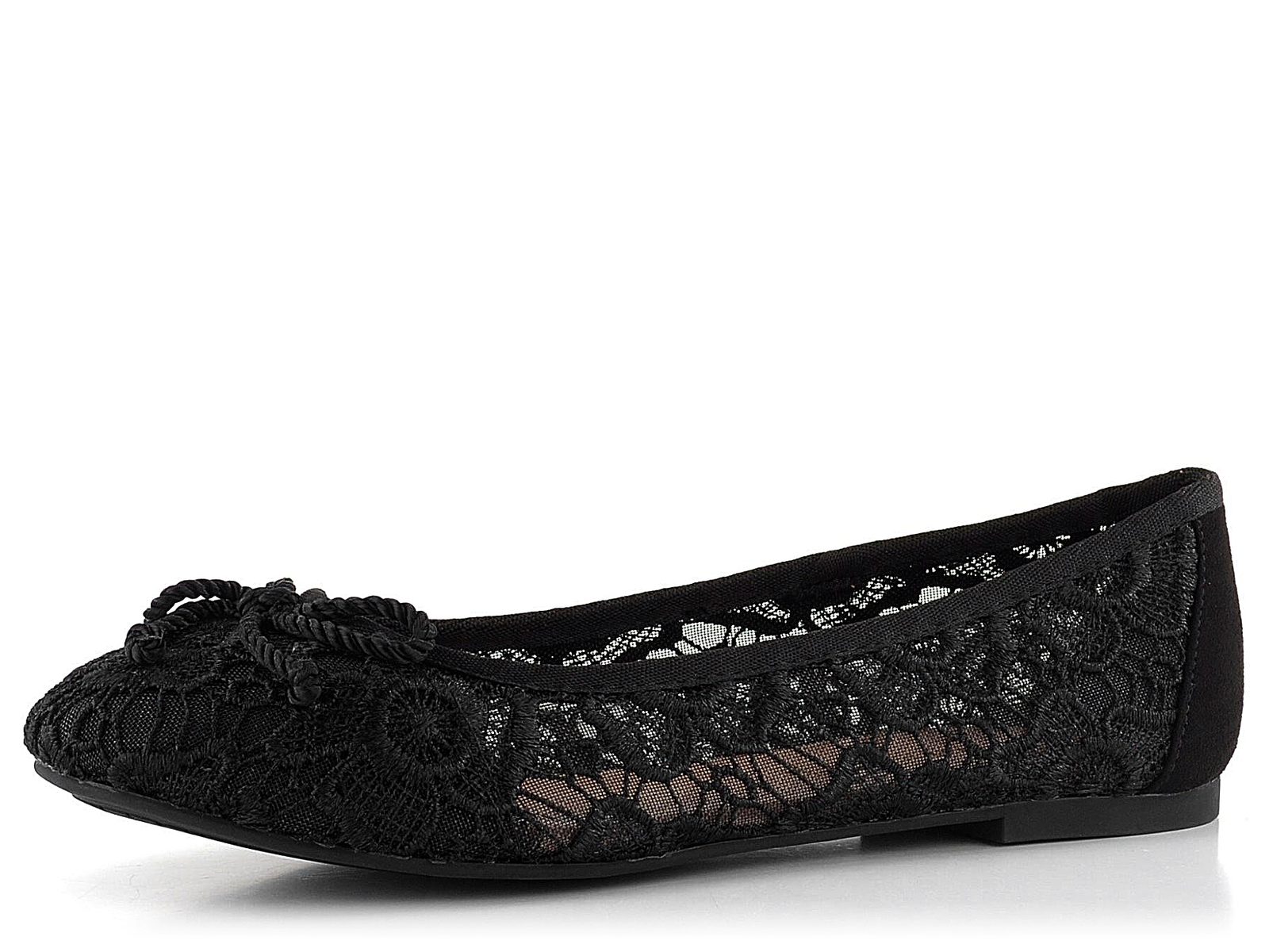 Dámské krajkové balerínky v elegantní černé barvě s mašličkou na nízkém podpatku.