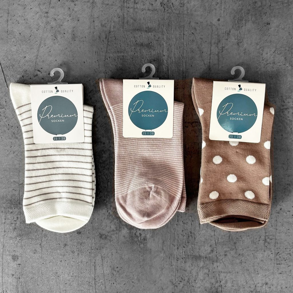 Dámské bavlněné ponožky 3 páry hnědá/bílá 34213 - 35-38