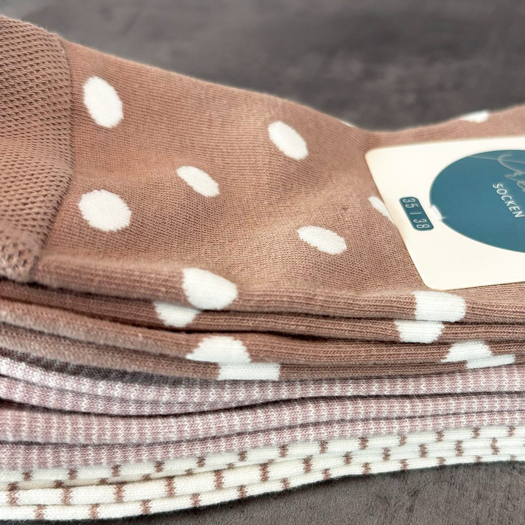 Dámské bavlněné ponožky se vzorem proužků a puntíků.