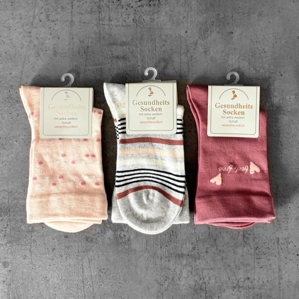 Dámské ponožky se zdravotním lemem 3 páry červená/oranžová/sv.šedá 39545