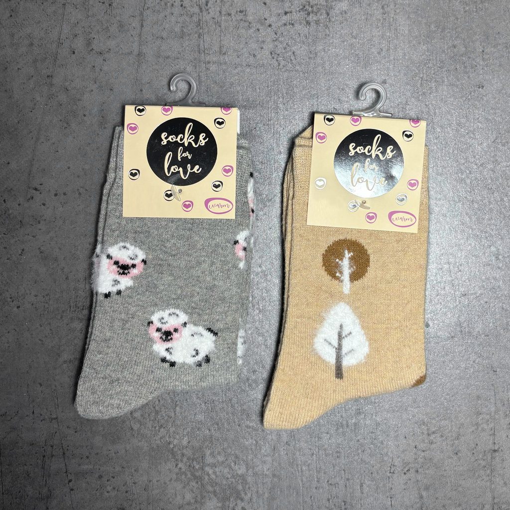 Dámské teplé ponožky s obrázky šedé/ovečka, béžové/lísteček 2 páry 37714