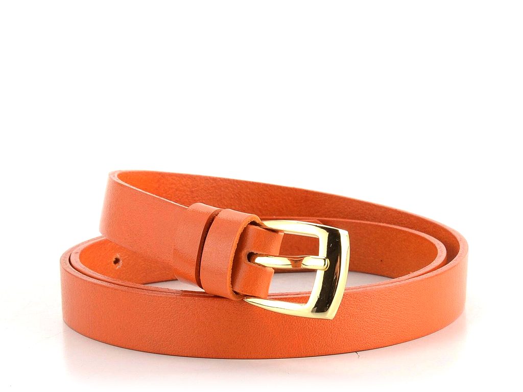 Dámský kožený opasek oranžový se sponou ve zlaté barvě 202Z-08 - 100