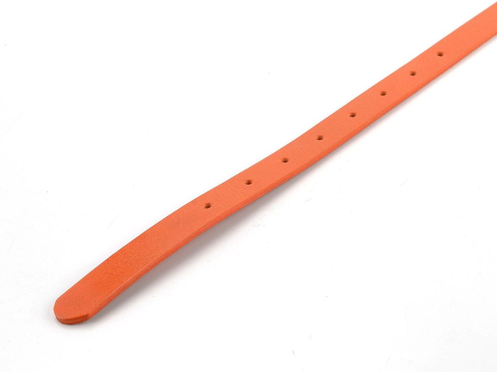 Dámský kožený pásek/opasek v oranžové barvě s kovovou sponou, vhodný jako společenský i pro běžné nošení.