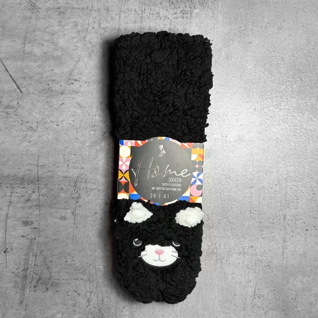Hebké domácí ponožky v uni velikosti s motivem kočičky.