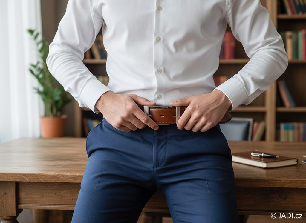 Pánský luxusní pásek/opasek v koňakové barvě s matovanou sponou, vhodný jako společenský i pro běžné nošení.