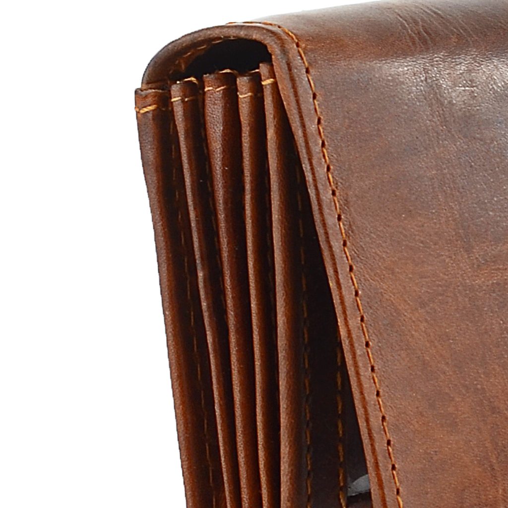 Dámská prostorná peněženka z mačkané kůže v pěkném odstínu kaštanově hnědé barvy.