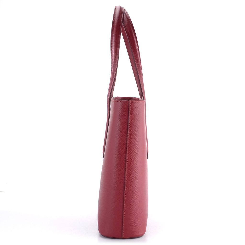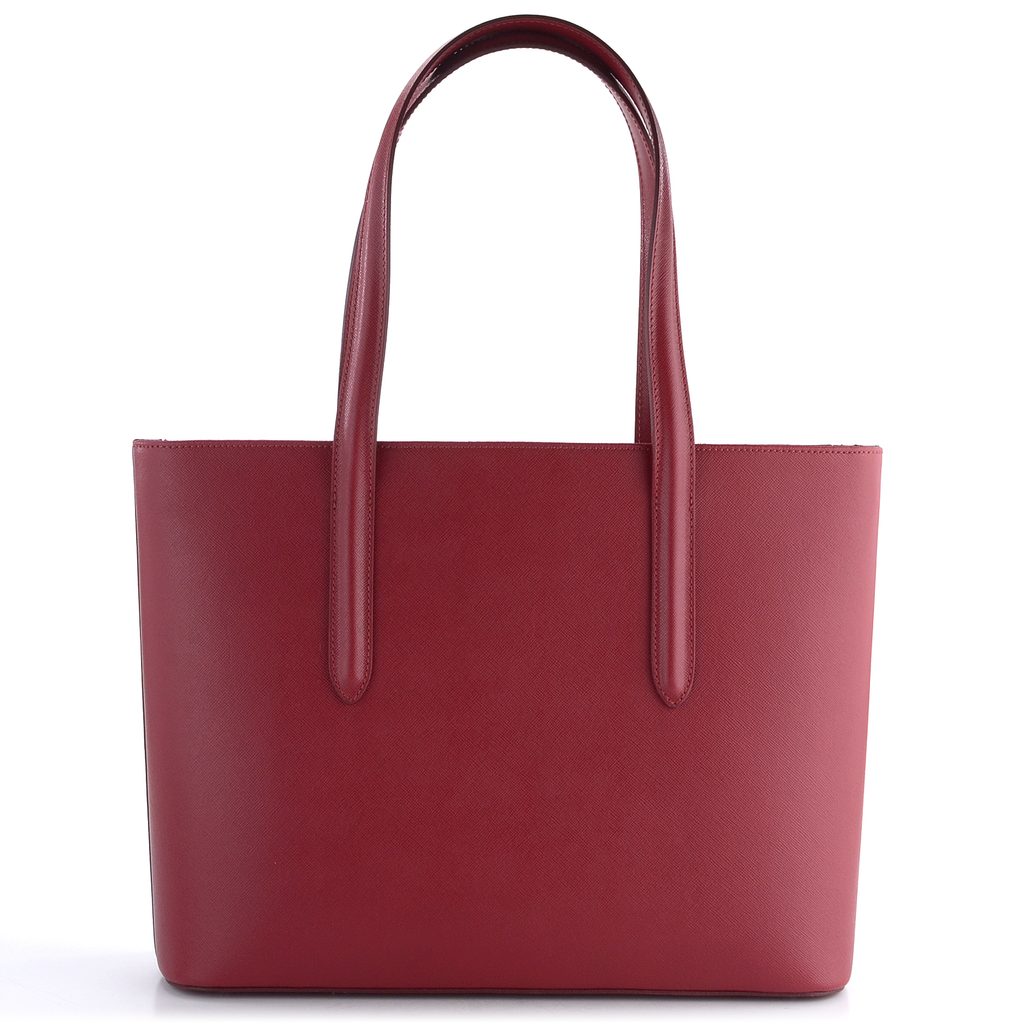 Dámská luxusní kabelka ze safiáno kůže v rubínově červené barvě.