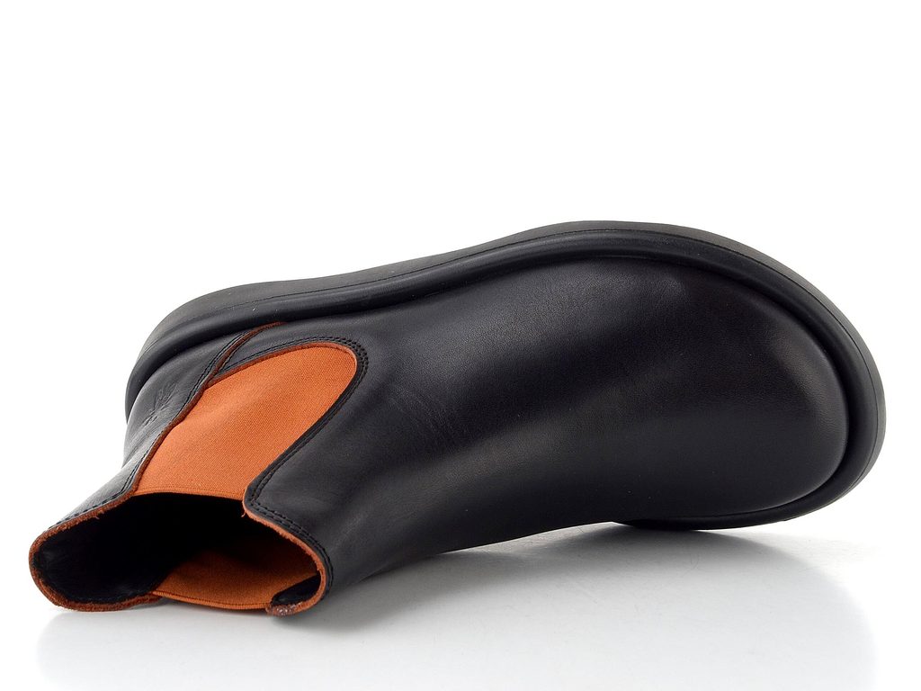 Dámský nevyteplený kotník z hladké kůže, se širokými pruženkami po obou stranách a vyjímatelnou vložkou.