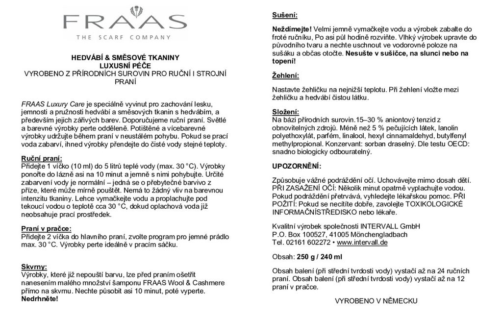 Silk & blended fabric luxury care pro praní hedvábných materiálů od značky Fraas.
